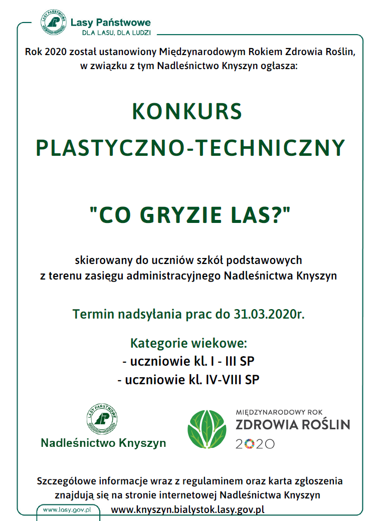 Konkurs plastyczno-techniczny "Co gryzie las?" organizowany przez Nadleśnictwo Knyszyn.