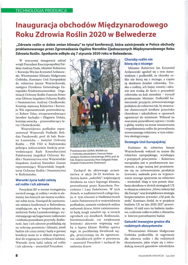 Podlaski Festiwal Zdrowia Roślin 2020 - inauguracja obchodów Międzynarodowego Roku Zdrowia Roślin 2020 w województwie podlaskim