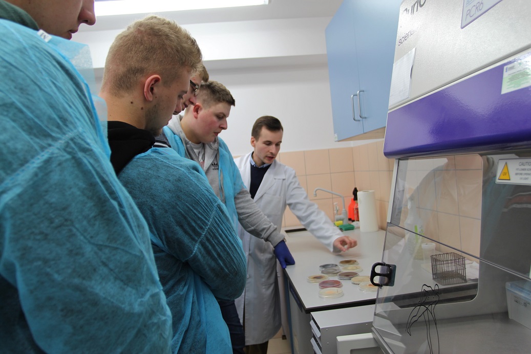Podczas zajęć praktycznych uczniowie poznali szczegóły pracy laboratoryjnej dotyczącej molekularnej identyfikacji patogenów grzybowych, metod ekstrakcji i identyfikacji ich wtórnych metabolitów – mikotoksyn, za pomocą najnowocześniejszych technik i aparatury analitycznej. Dodatkowo młodzież zapoznała się z całokształtem działalności naukowej prowadzonej prze Instytut Ochrony Roślin–PIB, TSD w Białymstoku. Kilku uczniów było zainteresowanych przeprowadzeniem analiz sianokiszonek w kierunku występowania mikotoksyn. Spotkanie uczniów z naukowcami Instytutu zostało zakończone losowaniem upominku, przekazanego przez naszych Darczyńców, przekazaniem do Szkoły ciekawych książek i wspólną fotografią.