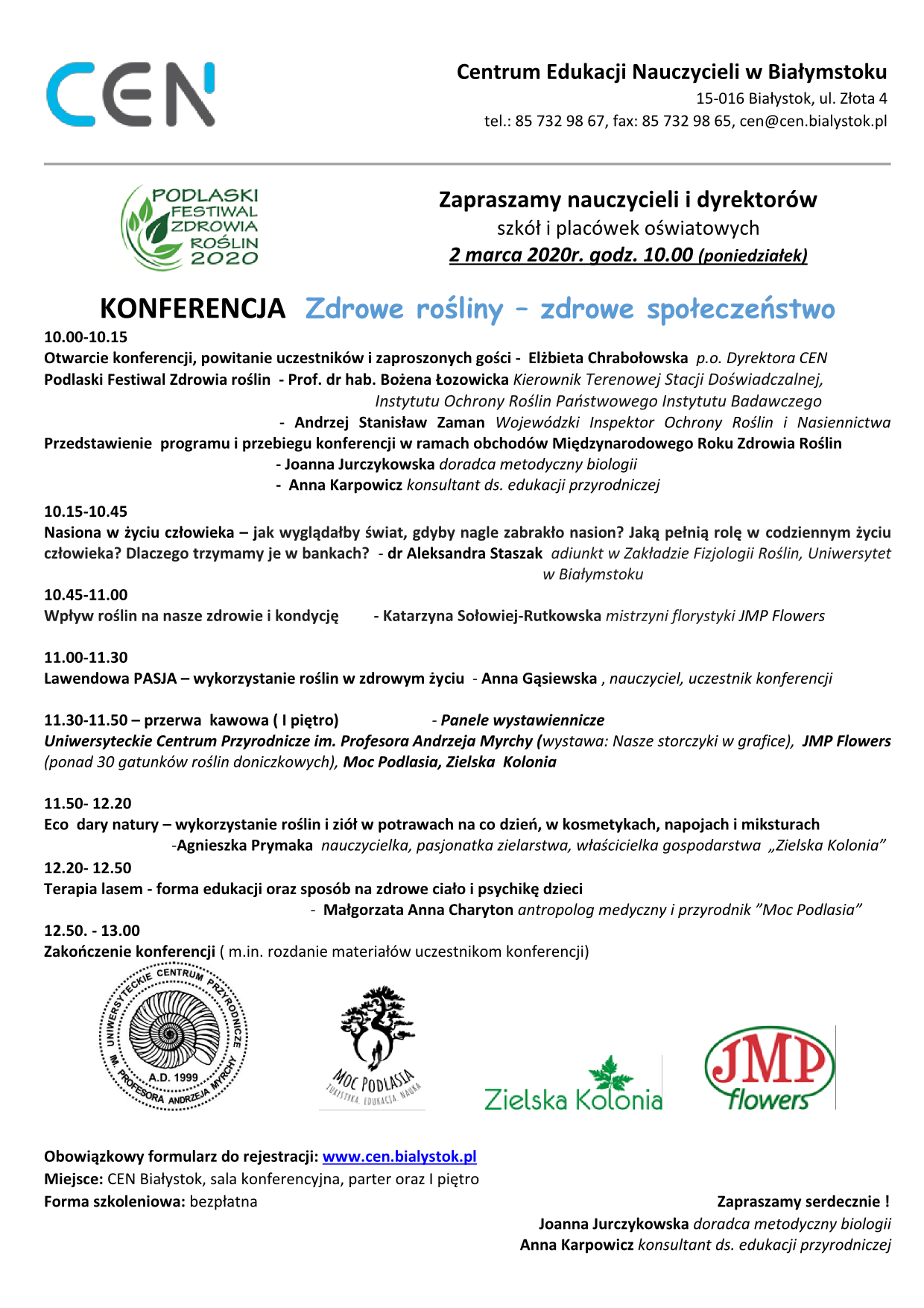 Centrum Edukacji Nauczycieli w Białymstoku organizuje konferencję skierowaną do nauczycieli, dyrektorów szkół i placówek oświatowych pt. ,,Zdrowe rośliny – zdrowe społeczeństwo”. Jest to jedno z wydarzeń w ramach Podlaskiego Festiwalu Zdrowia Roślin. Szczegóły w linku. Więcej informacji znajdą również Państwo na stronie Centrum Edukacji Nauczycieli w Białymstoku.
