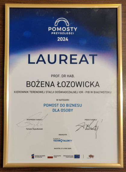 Z przyjemnością informujemy, że w gronie wyróżnionych znaleźli się: Pani Profesor Bożena Łozowicka, dr hab. Piotr Kaczyński, prof. IOR – PIB, dr Izabela Hrynko i dr Piotr Iwaniuk. Szczególnie cieszy fakt, że najliczniejszą grupę nagrodzonych – na tle innych zakładów Instytutu – stanowią pracownicy naszej jednostki. Gratulujemy!