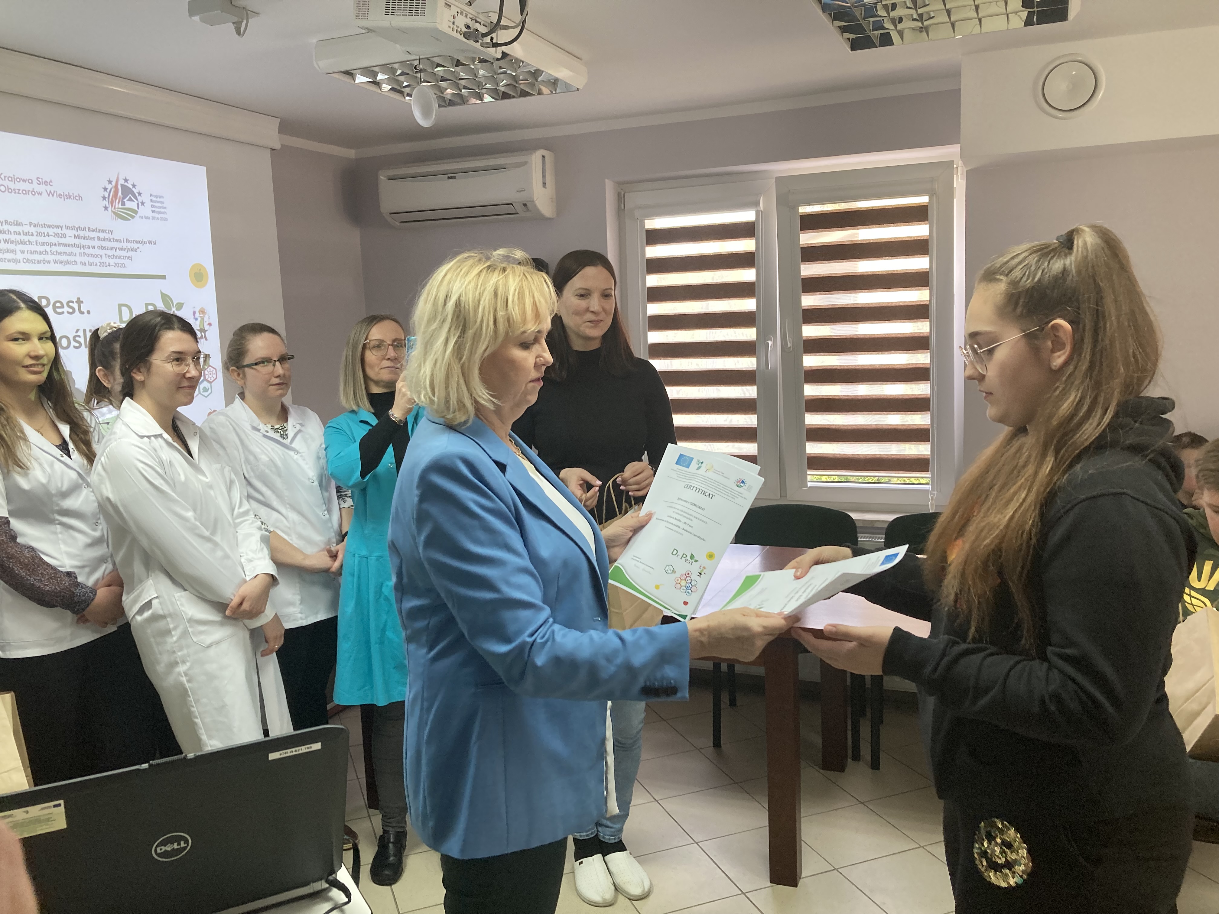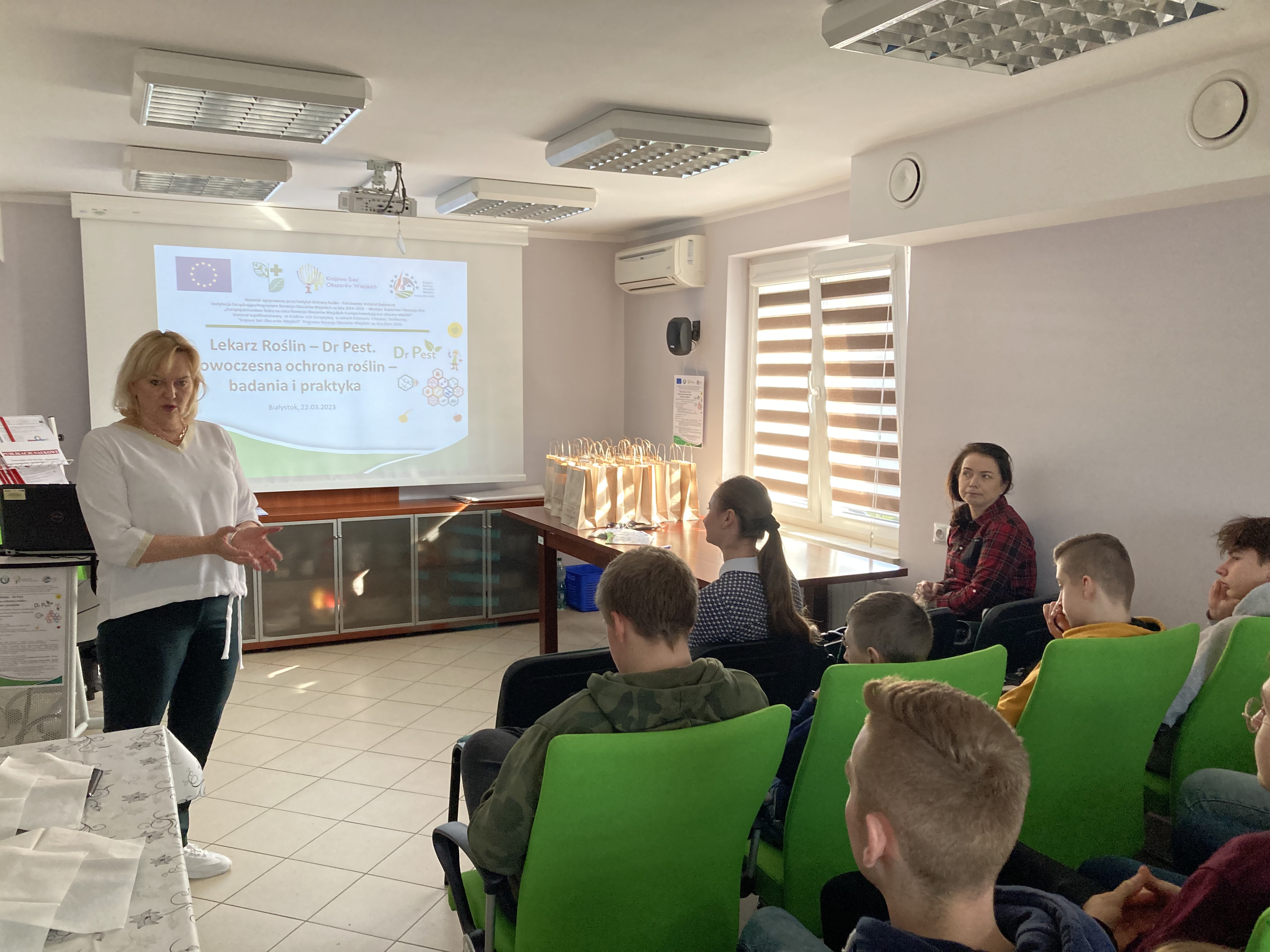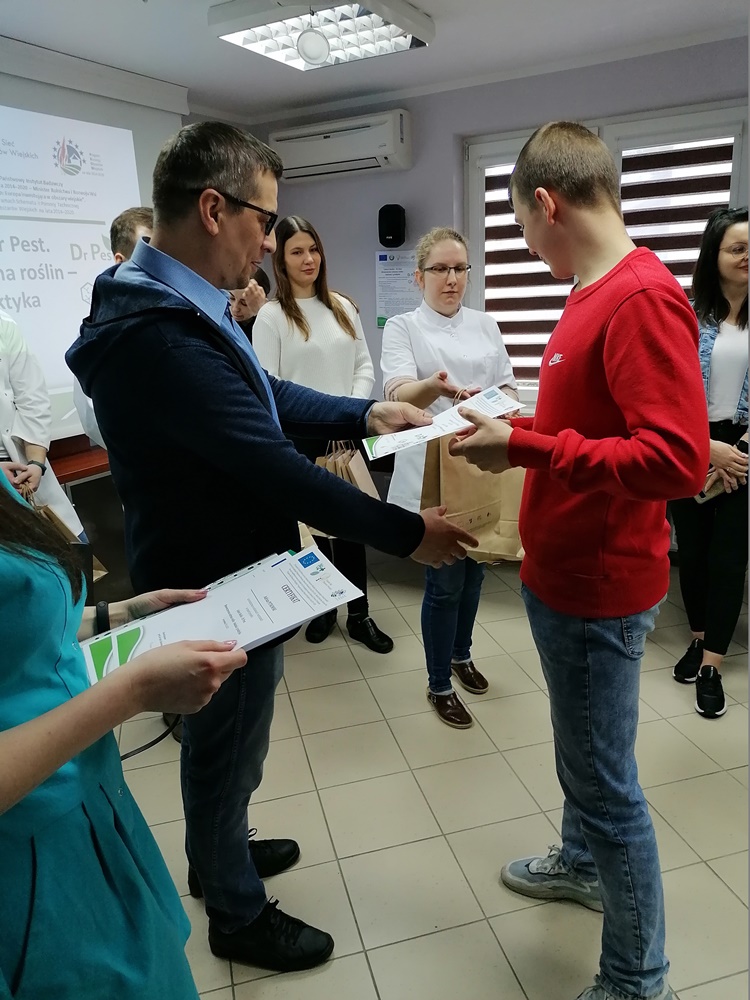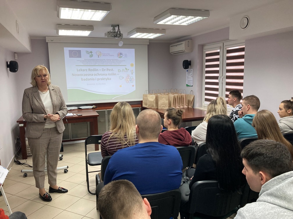 22 i 23 marca w ramach projektu KSOW pn.: „Lekarz Roślin – Dr Pest. Nowoczesna ochrona roślin – badania i praktyka” gościliśmy uczniów z Zespołu Szkół Centrum Kształcenia Rolniczego im. Krzysztofa Kluka w Rudce oraz z Zespołu Szkół nr 1 w Białej Piskiej. Grupy powitała prof. dr hab. Bożena Łozowicka, koordynator projektu. W trakcie szkolenia młodzież pogłębiła wiedzę z zakresu nowoczesnej ochrony roślin, bezpiecznego stosowania pestycydów, bezpieczeństwa żywności i zagrożeń pszczół zawartej w broszurce edukacyjno-informacyjnej w formie pigułki „Kompendium Lekarz Roślin – Dr Pest”.