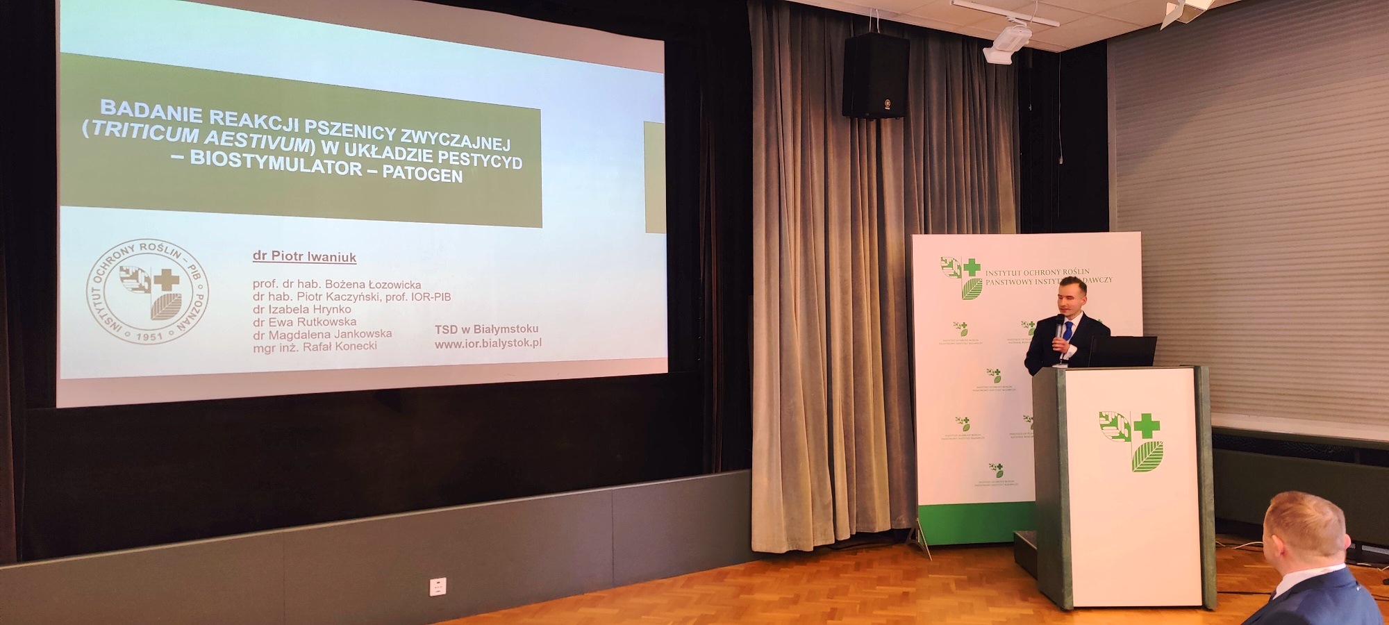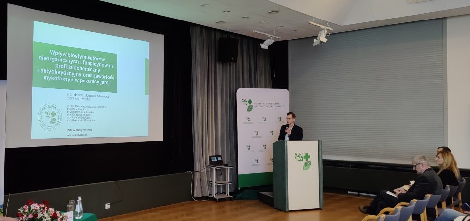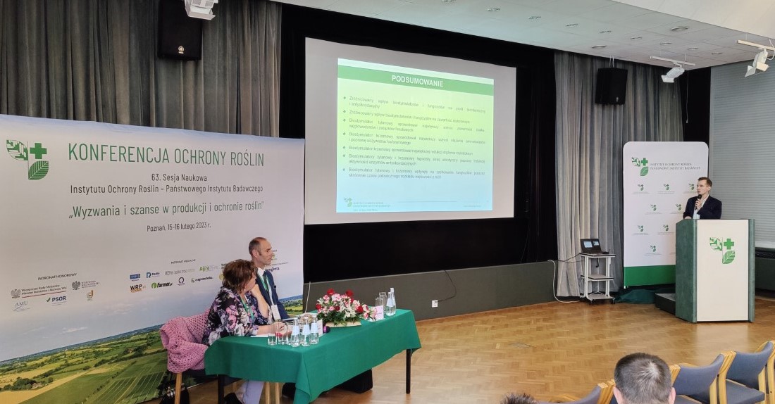 W dniach 15-16 lutego 2023 r. w Poznaniu odbyła się Konferencja Ochrony Roślin, 63 Sesja Naukowa Instytutu Ochrony Roślin – Państwowego Instytutu Badawczego, pod hasłem „Wyzwania i szanse w produkcji i ochronie roślin”. Prof. dr hab. Bożenę Łozowicką reprezentowali mgr Piotr Iwaniuk oraz mgr inż. Rafał Konecki. W panelu „Integrowana ochrona roślin”, mgr Piotr Iwaniuk wygłosił referat „Wpływ biostymulatorów nieorganicznych i fungicydów na profil biochemiczny i antyoksydacyjny oraz zawartość mykotoksyn w pszenicy jarej”, który spotkał się z zainteresowaniem i ożywioną dyskusją z audytorium. Konferencja była szansą na wymianę poglądów w perspektywie nowych wyzwań stawianych w ochronie roślin.