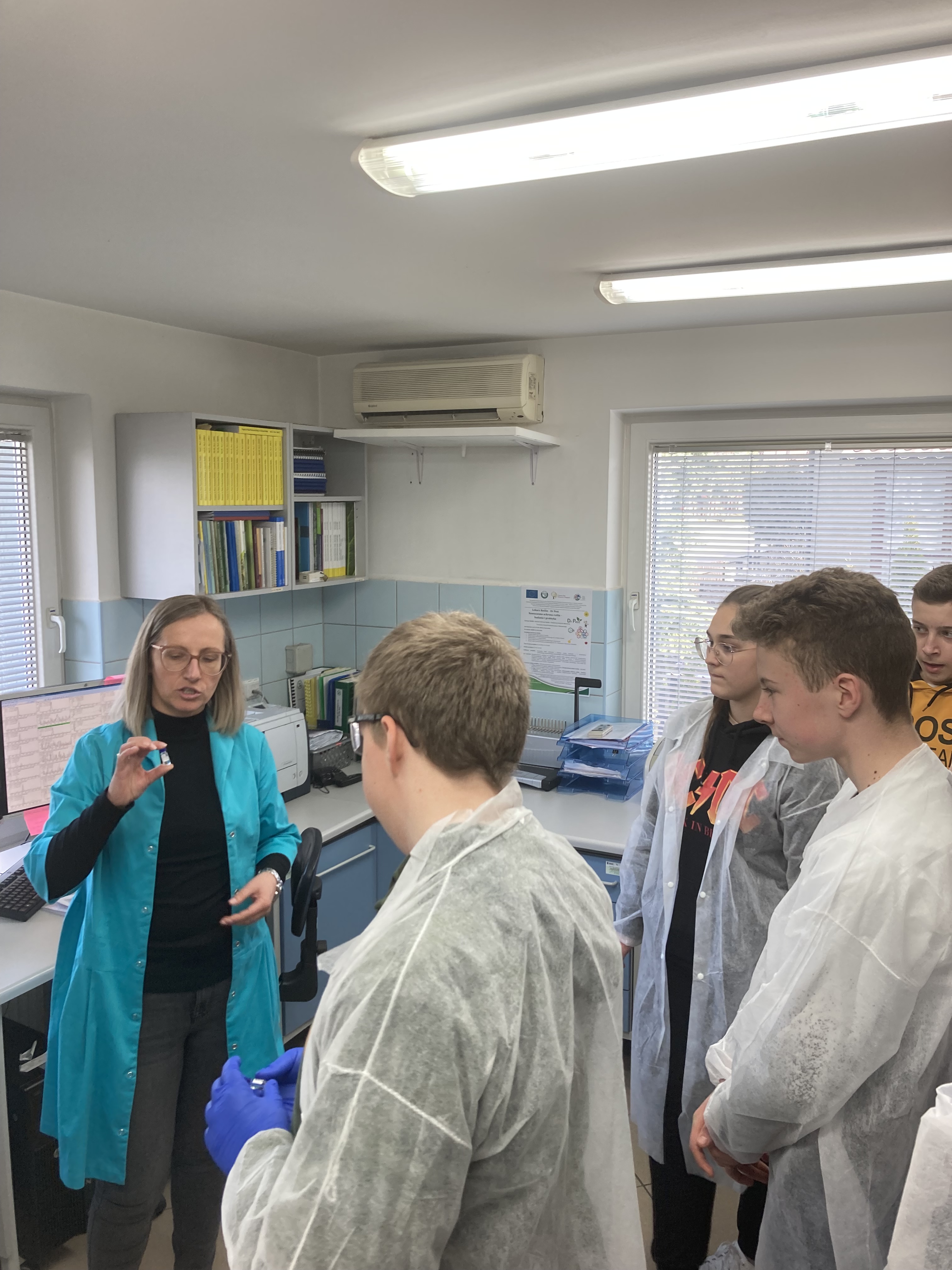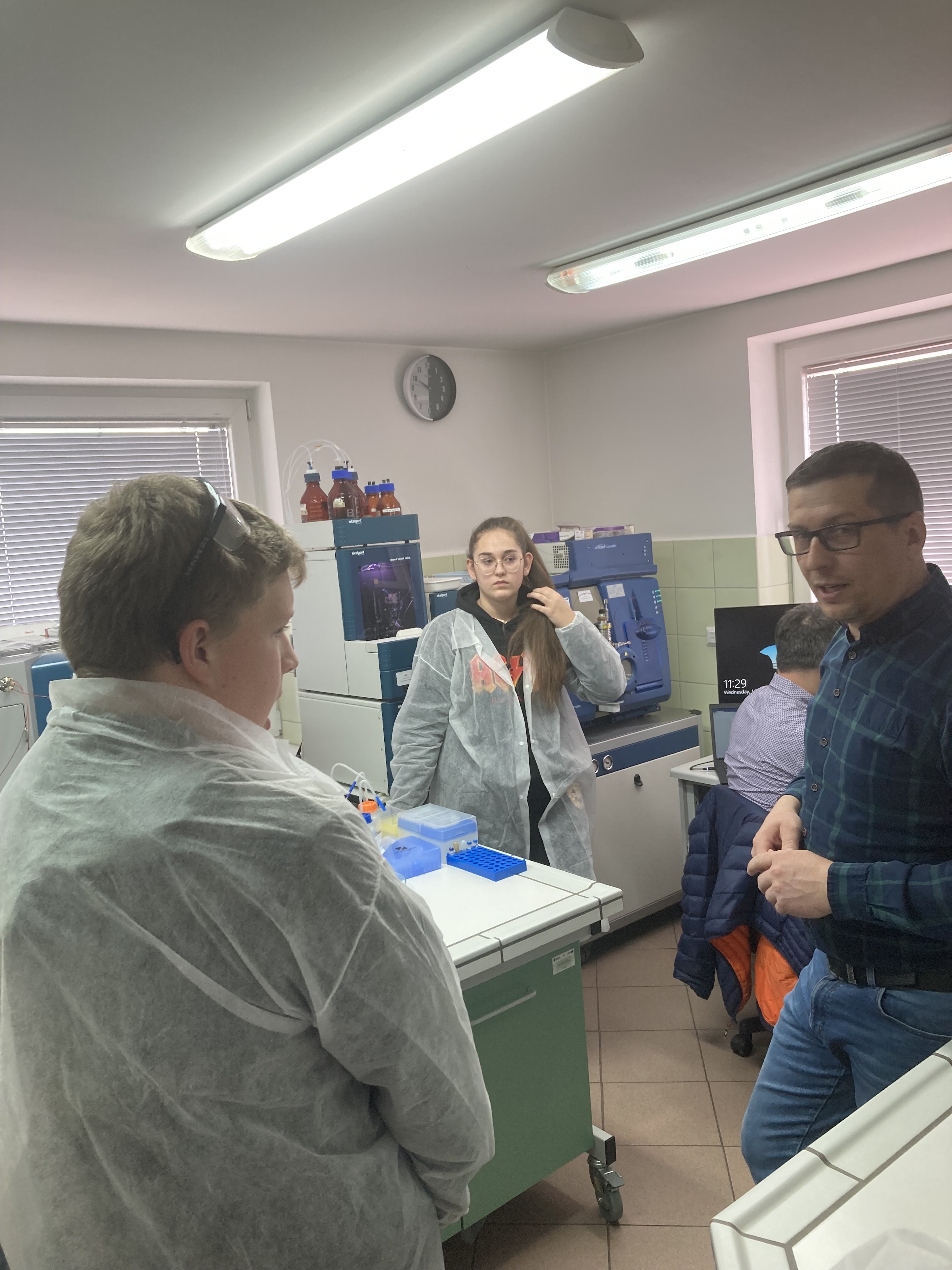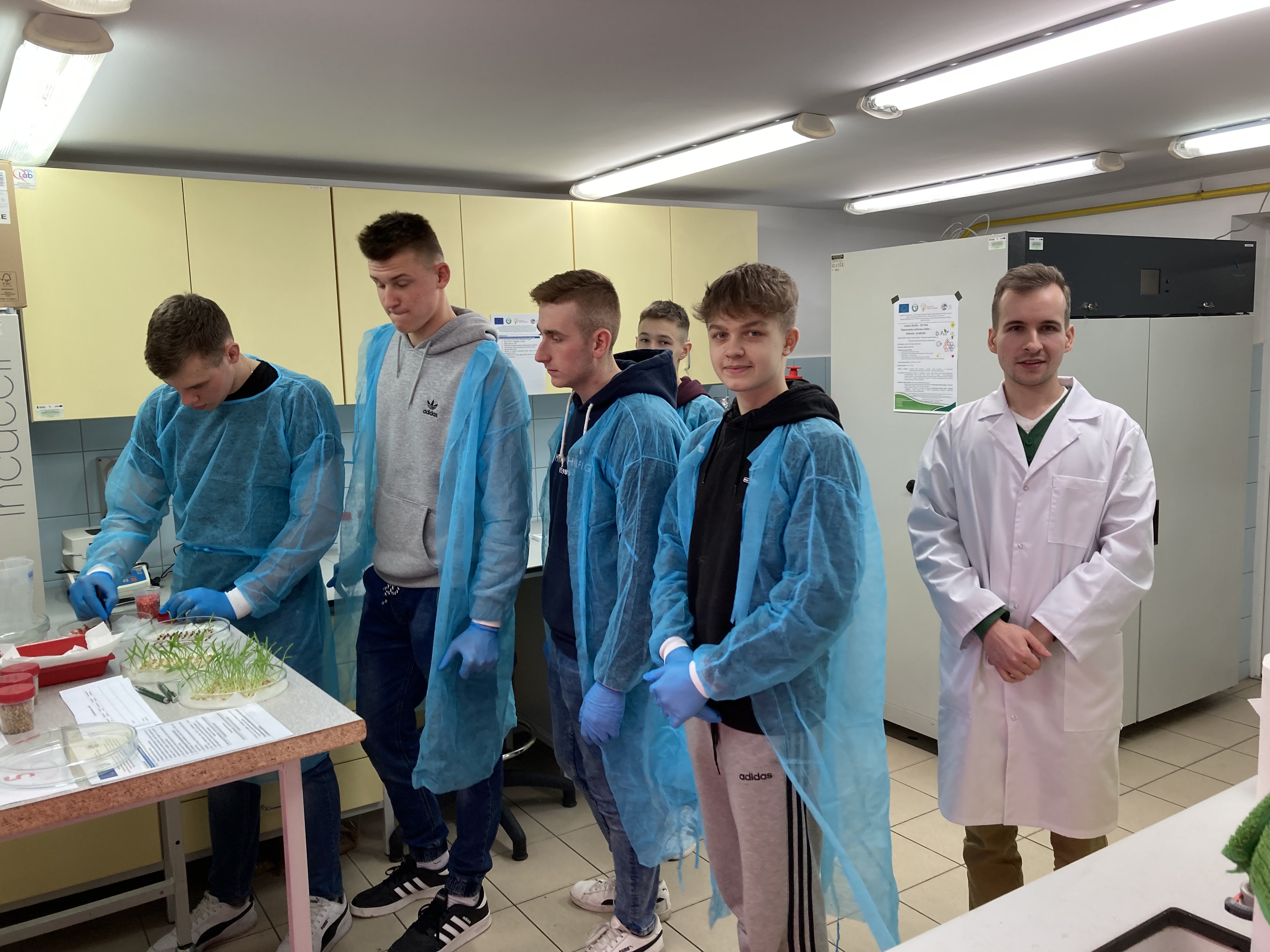 Uczniowie mieli niepowtarzalną szansę przyjrzenia się z bliska jak wyglądają doświadczenia w fitotronie czy w jaki sposób monitorować mszyce odłowione z aspiratora Johnsona. Samodzielnie dokonali identyfikacji zbóż i ich parametrów tj. zawartość skrobi, glutenu, masa tysiąca ziaren przy pomocy analizatora ziarna, a następnie określili siłę kiełkowania.