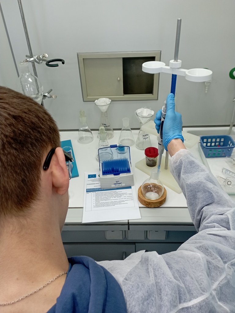 W nowoczesnych laboratoriach uczestnicy z zaciekawieniem przystąpili do warsztatów wykonując czynności zgodnie z instrukcjami profesjonalnej kadry. Przygotowywali ekstrakty z próbek owoców, warzyw, zbóż, ziół, gleby przeznaczonych do badań pozostałości środków ochrony roślin z wykorzystaniem technik chromatografii cieczowej i gazowej oraz spektofotometrii.