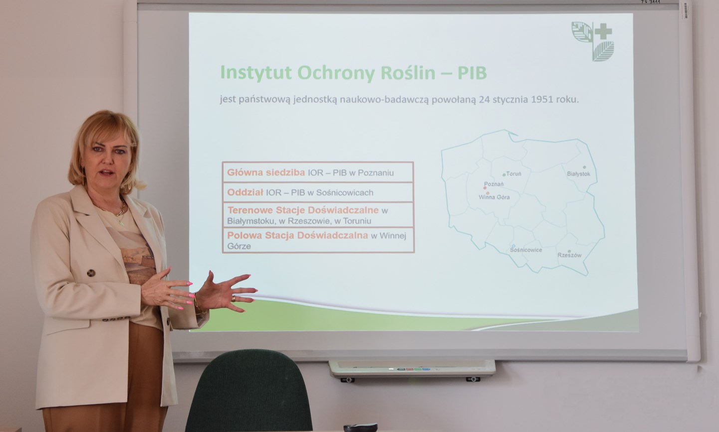 Prof. dr hab. Bożena Łozowicka, koordynator projektu, przywitała uczestników i przedstawiła harmonogram spotkania. W trakcie szkolenia promowano zagadnienia broszury edukacyjno-informacyjnej „Kompendium Lekarz Roślin – Dr Pest” przedstawiającej abc środków ochrony roślin oraz tematykę związaną z nowoczesną ochroną roślin, bezpieczeństwem żywności i owadów zapylających.